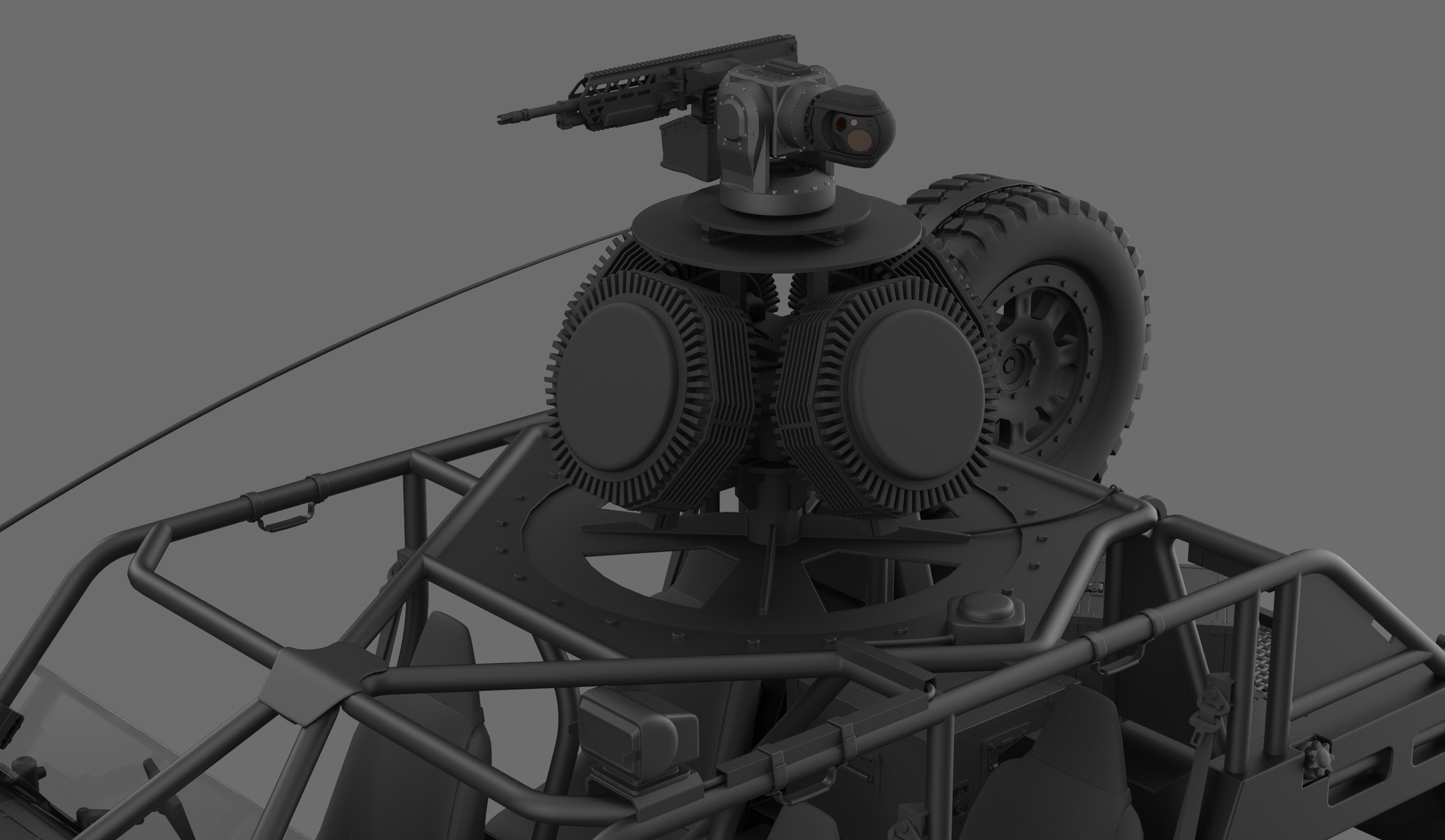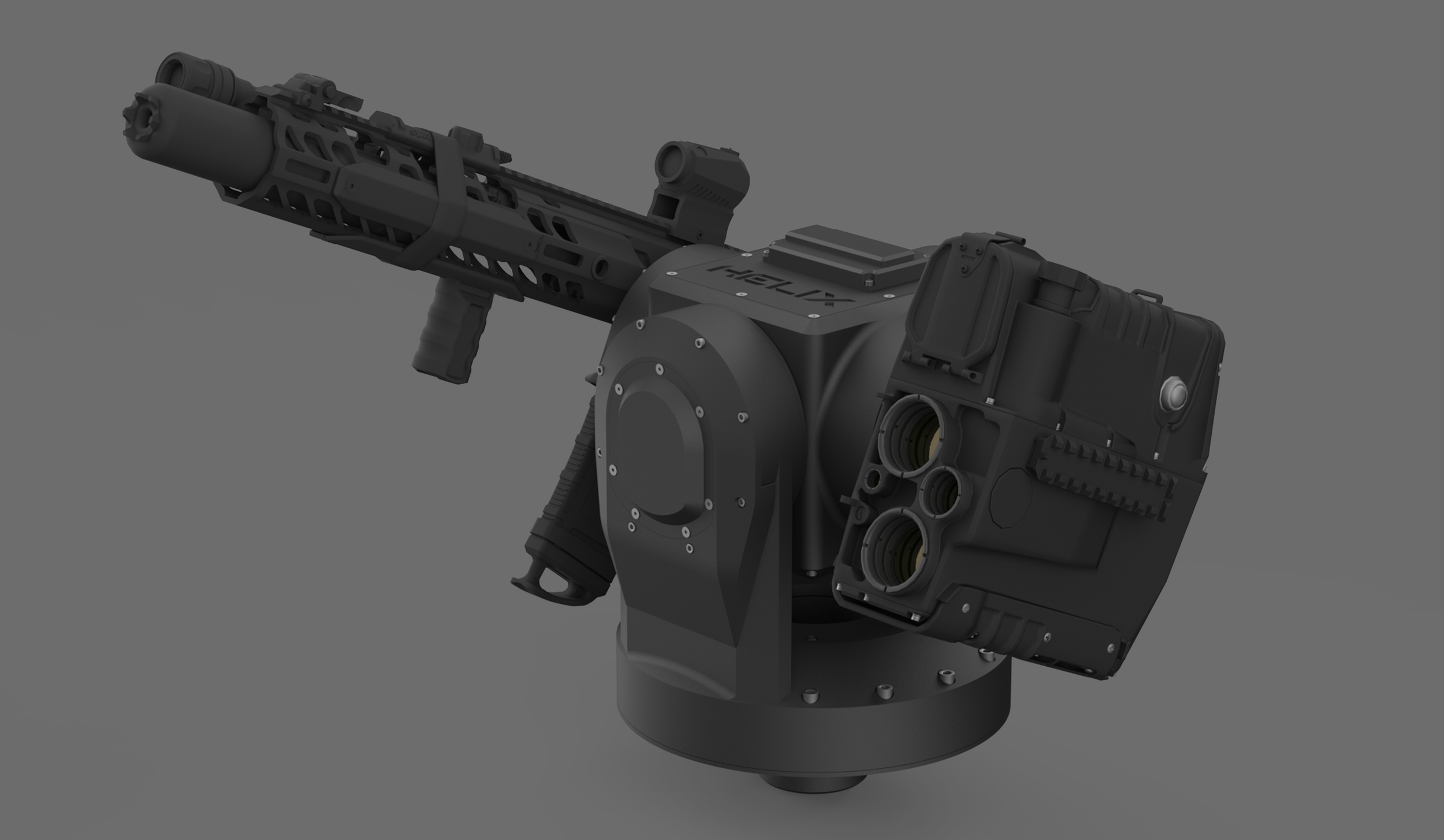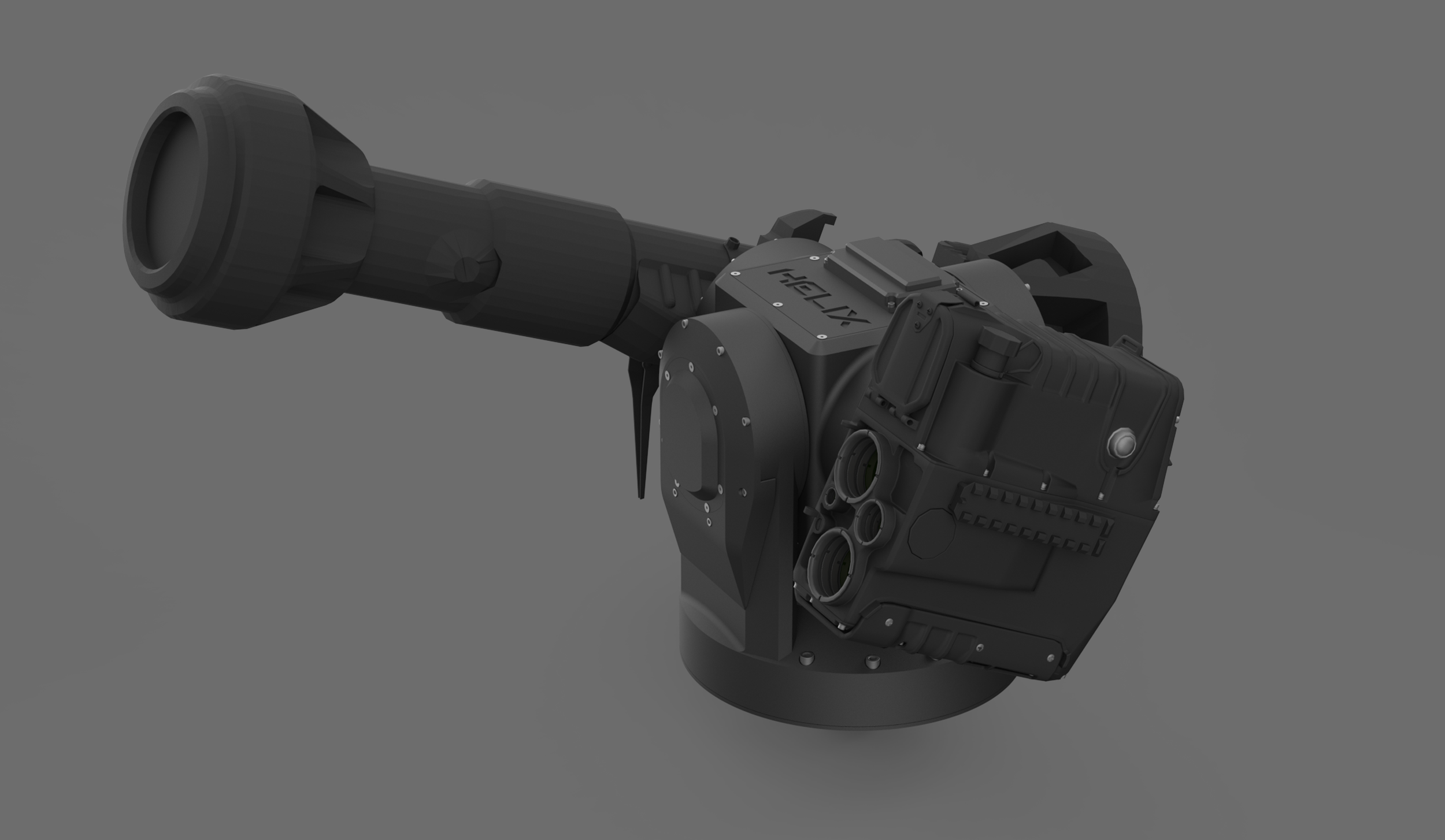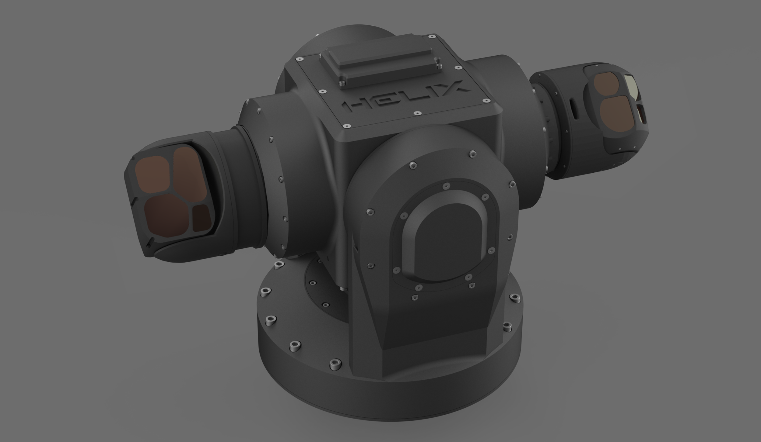 HELIX is a heavy-payload, high-speed, multi-axis stabilization platform capable of supporting up to 250 pounds of combined payload in single or dual-payload configurations. It is designed for initial deployment on ground vehicles and fixed-site installations, with support for continuous azimuth rotation and stabilized operation at vehicle speeds up to 100 mph.